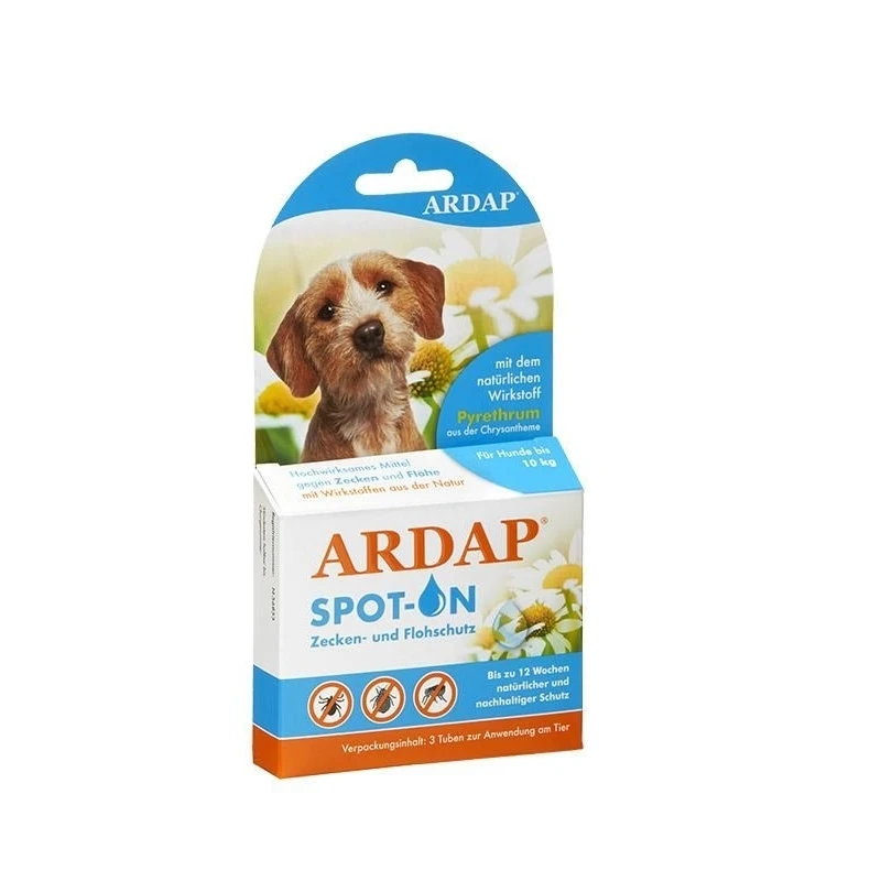 ARDAP SPOT-ON mit dem natürlichen Wirkstoff „Pyrethrum“ aus der Chrysantheme ist ein hochwirksames Mittel zur äußerlichen Anwendung bei kleinen bis großen Hunden.