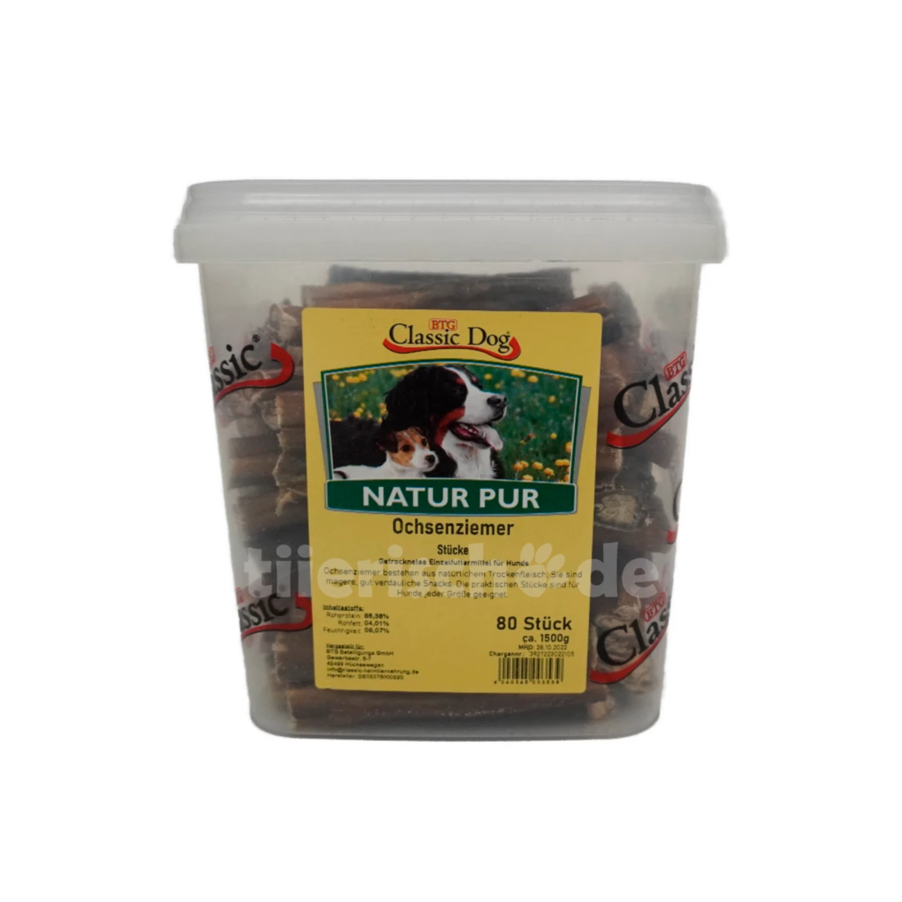 Ochsenziemerstücke sind aus 100% natürlichem Fleisch ohne den Zusatz künstlicher Konservierungsstoffe.