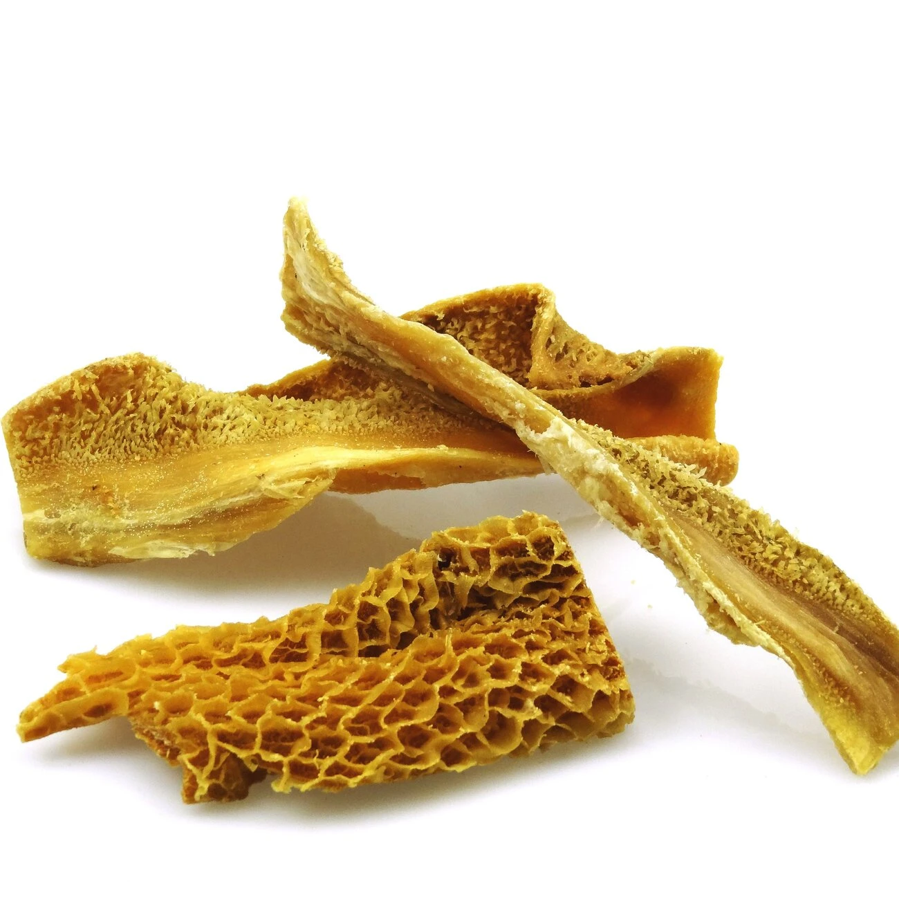 Im Gegensatz zu dem grünen Rinderpansen, wird der weiße gereinigt, wodurch die Geruchsintensität deutlich geringer ist als herkömmlich. Mit einem Härtegrad 2 von 6 kann der Pansen ganz genüsslich gekaut werden.