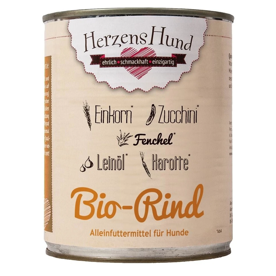 Herzenshund Bio Hundefutter Rindfleisch ist ein Alleinfuttermittel für Hunde.