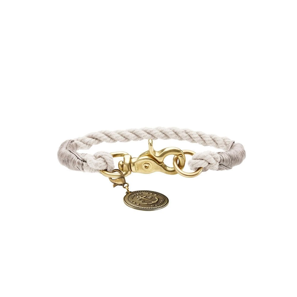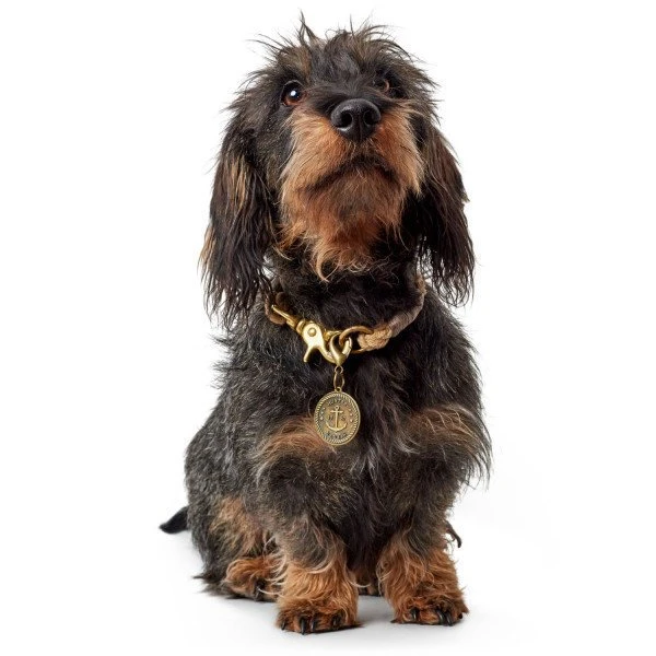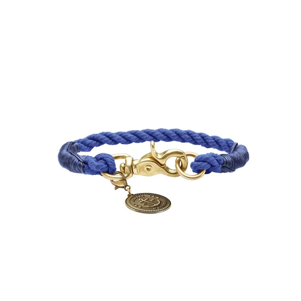 Das Halsband ist für kleine Hunde geeignet und besteht aus robustem, geflochtenen Tau, das an ein Schiffstau erinnert. Der Scherenkarabiner sorgt dafür, dass sich das Hundehalsband leicht schließen lässt. Die funkelnden Messingbeschläge und die abnehmbare Plakette machen das Halsband zu einem ganz besonderen und individuellen Hingucker. Außerdem sind die Messingbeschläge besonders witterungsbeständig.