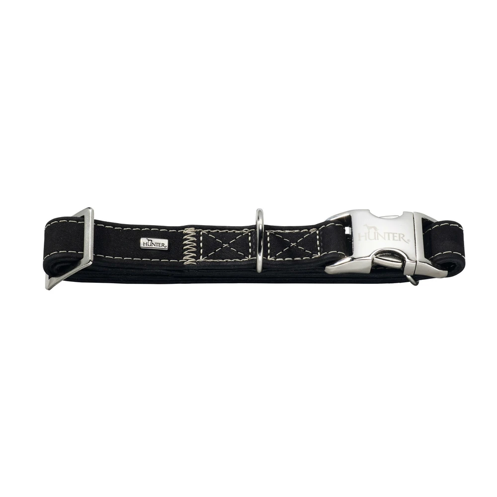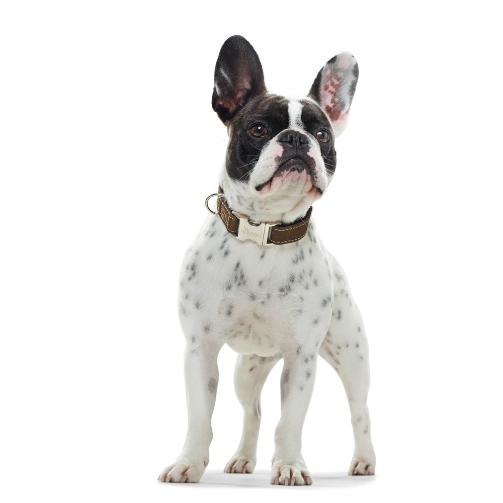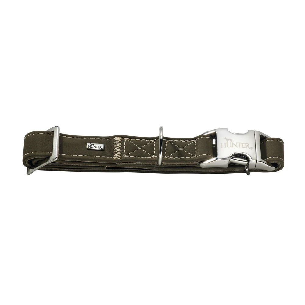 Lederhalsband von HUNTER aus der Serie Hunting. Nubukleder, Steckverschluss aus Aluminium, Metall-Schieber. Gegensätze ergänzen sich – und die Halsung HUNTING ALU-STRONG ist der perfekte Beweis dafür. Wenn weiches, samtartiges Nubukleder auf einen Aluminium-Steckverschluss trifft, der bis zu 200 kg Zugkraft standhält, ist das die perfekte Mischung aus Ästhetik und Widerstandsfähigkeit. Die natürlichen Farbtöne der stufenlos verstellbaren Halsung passen hervorragend zum Fell eines jeden Hundes und liegen angenehm sanft am Hals an. Eine helle Kontrastnaht aus hochwertigem Garn betont den Look und lenkt die Aufmerksamkeit auf einen entscheidenden Punkt: die lederne Halsung wird in aufwändiger Handarbeit in Deutschland hergestellt. Ganz gleich ob der Vierbeiner mit HUNTING ALU-STRONG wirklich auf die Jagd geht oder lieber seinen Lieblingsball »hetzt« – das Must-Have ist robust, vielseitig und optisch ansprechend. Perfekt für alle, die Wert auf Qualität »Made in Germany« legen und die Vorteile stufenlos verstellbaren Hundezubehörs zu schätzen wissen. Hinweis: Unsere Leder werden so schonend wie möglich hergestellt. Bei gefärbtem Leder kann es anfänglich zu leichten, nachlassenden Abfärbungen kommen.