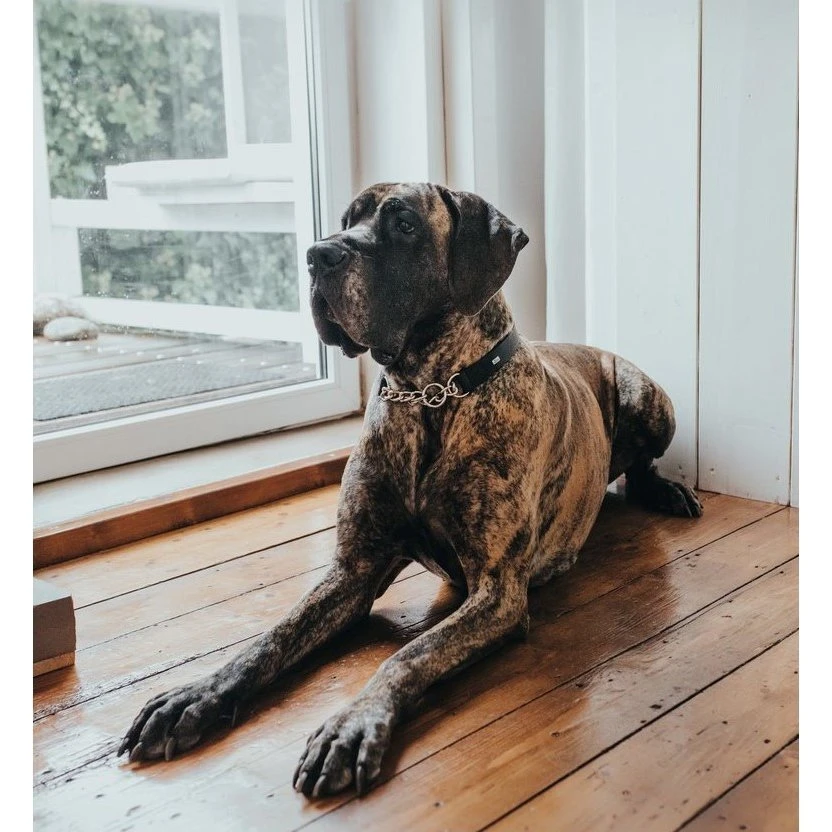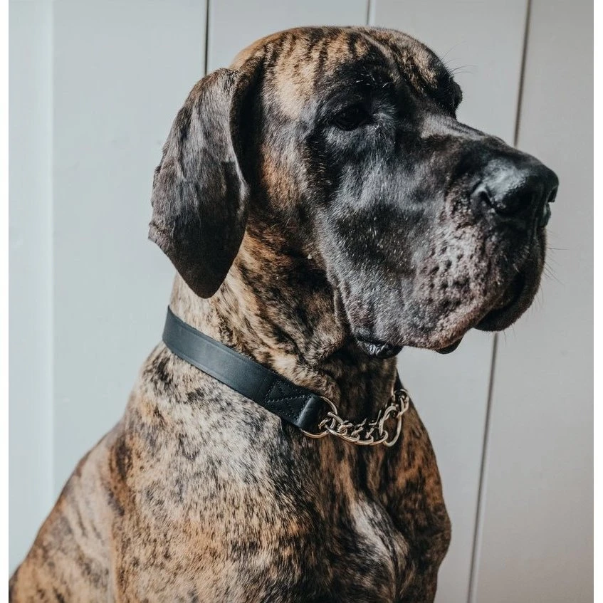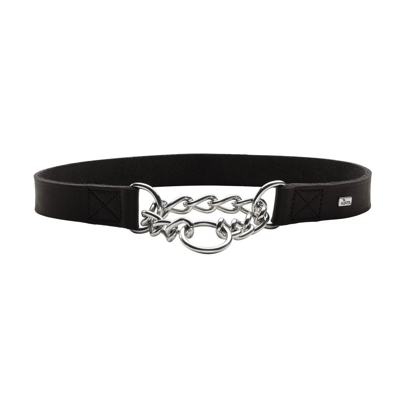 Die Hunter Halsung mit Kette Aalborg ist eine Kobination aus Leder und Kette. Die zieht sich bei Zug zusammen, bis es max. eng am Hals anliegt und bei Entlastung locker am Hals des Hundes hängt.