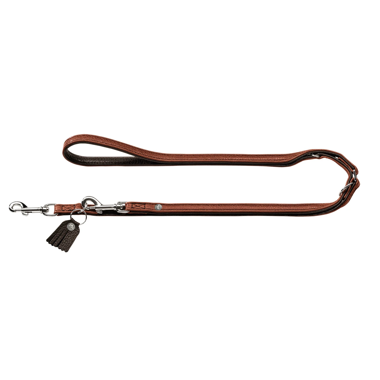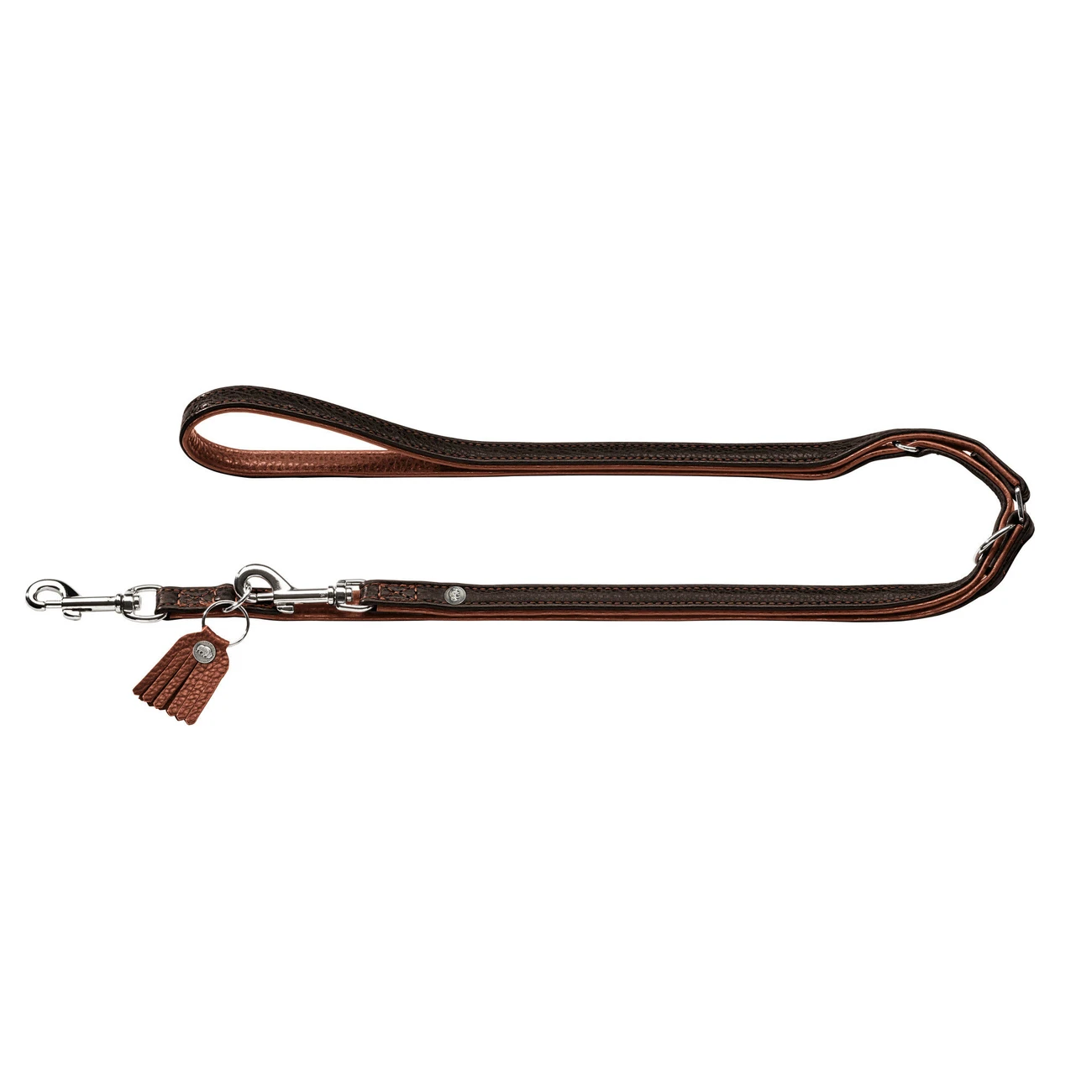 Auch wenn Sie noch so wachsam sind, auch wenn Ihr Hund noch so gut erzogen ist – manchmal ist eine Hundeleine unverzichtbar. Damit Sie in solchen Situationen Funktion und Eleganz vereinen können, gibt es die 3-fach verstellbare Führleine CODY aus exklusivem Bisonleder.