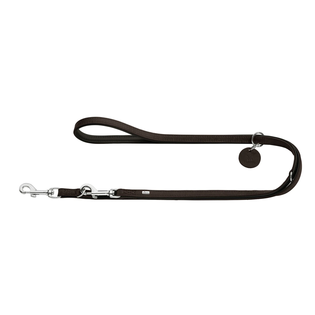 Verstellbare Führleine von Hunter aus echtem Rindsleder, 3-fache Verstellmöglichkeit. Besonders weich gepolstert. Made in Germany. Maßangabe: Breite in mm / Länge in cm.