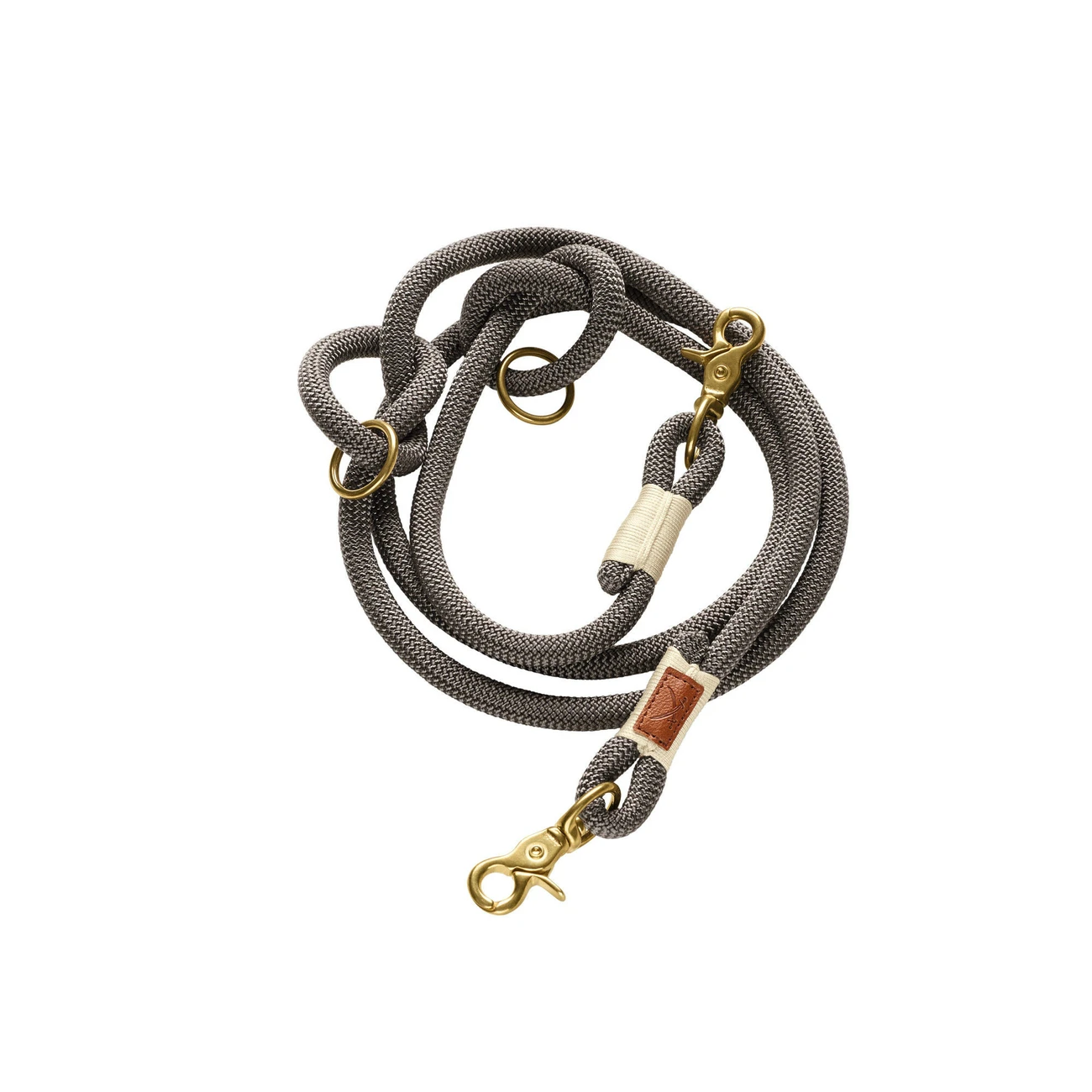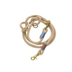 Verstellbare Führleine aus der Sansibar Rantum Serie von Hunter, maritimes Tau, Messingbeschläge, individuelle Verstellmöglichkeit (Ringe sind in Knoten befestigt, die auf der Leine verschoben werden können), modernes, nautisch angehauchtes Design, auffällige Farbakzente