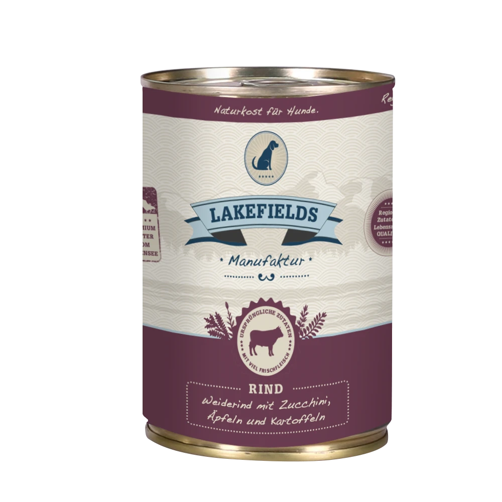 Lakefields Dosenfleisch-Menü Rind ist ein Alleinfuttermittel für Hunde.