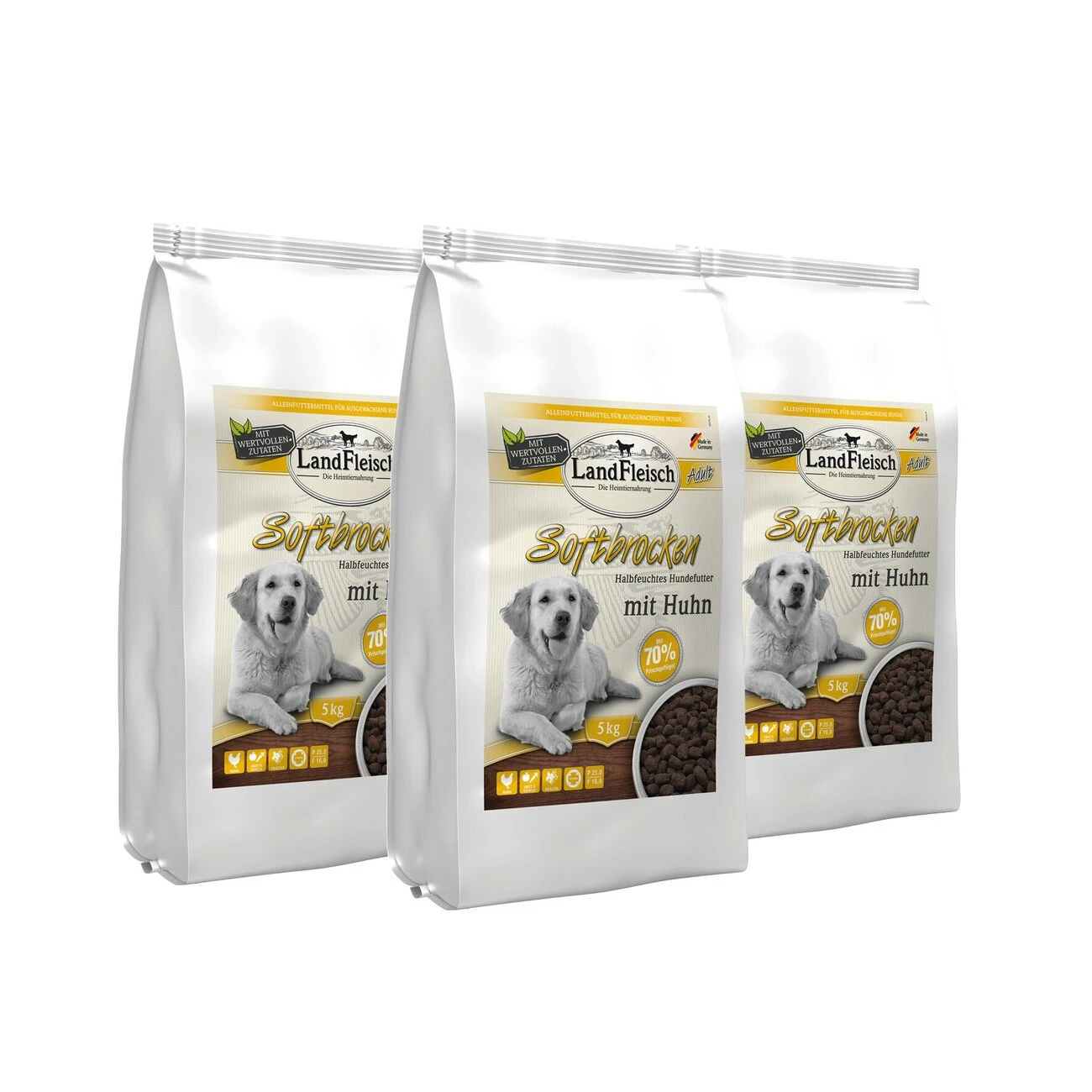 Landfleisch Dog Softbrocken mit Huhn ist ein Alleinfuttermittel für Hunde.