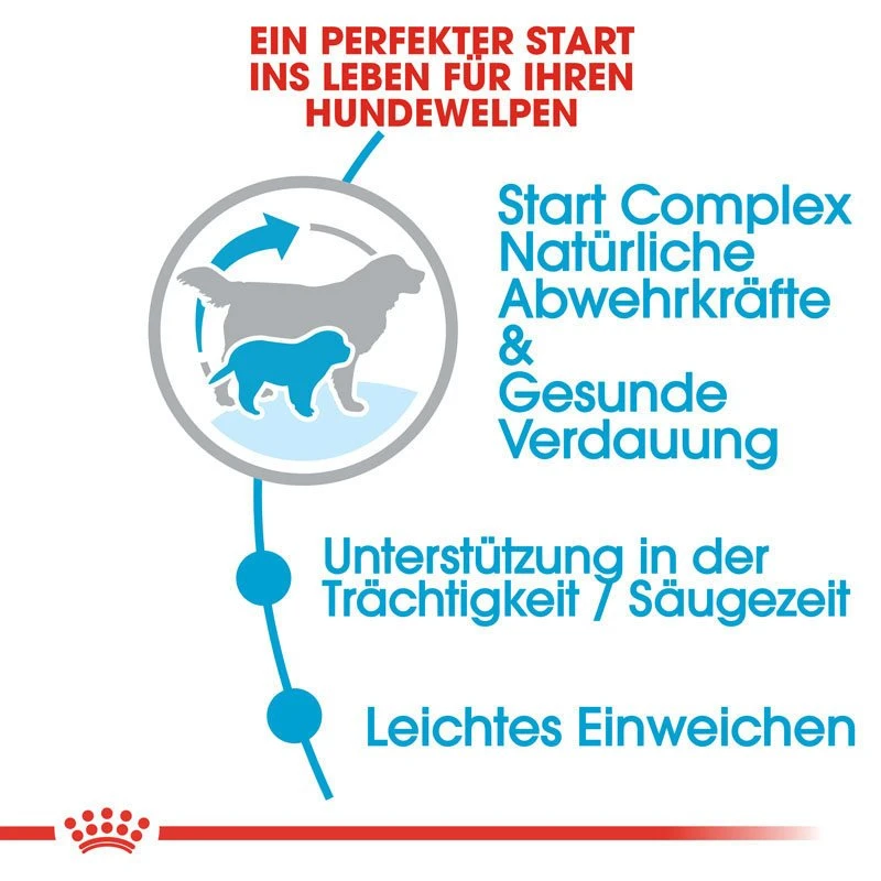 ROYAL CANIN Giant Starter Mother & Babydog enthält alle Nährstoffe, die eine Hündin während der Trächtigkeit und Säugephase benötigt. Zudem ist das Futter für Welpen ab der 3-4. Lebenswoche geeignet. Mit einem hohen Protein-, Energie- und Mineralstoffgehalt erfüllt dieses Futter auf optimale Weise die Ernährungsbedürfnisse von Mutter und Welpen.