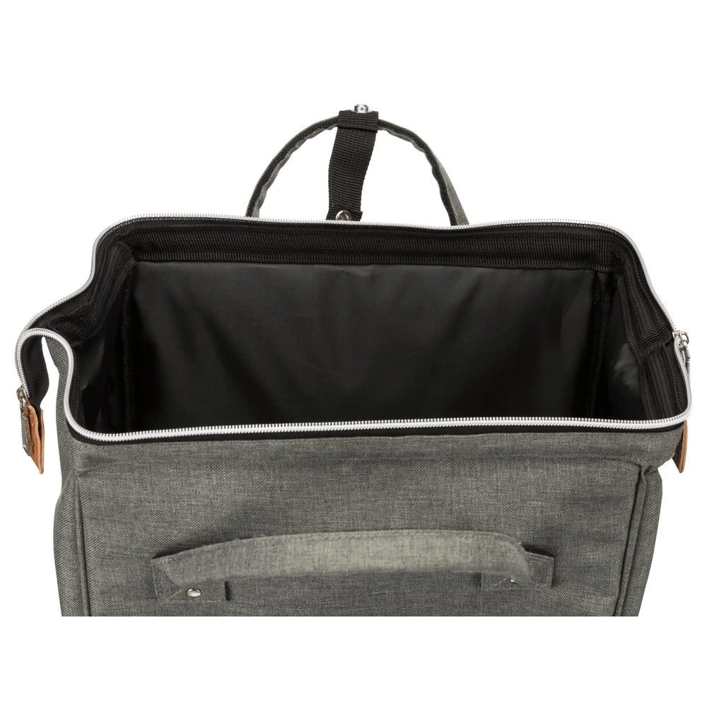 - Metallverstärkung sorgt auch bei Öffnung des Rucksacks für besondere Formstabilität